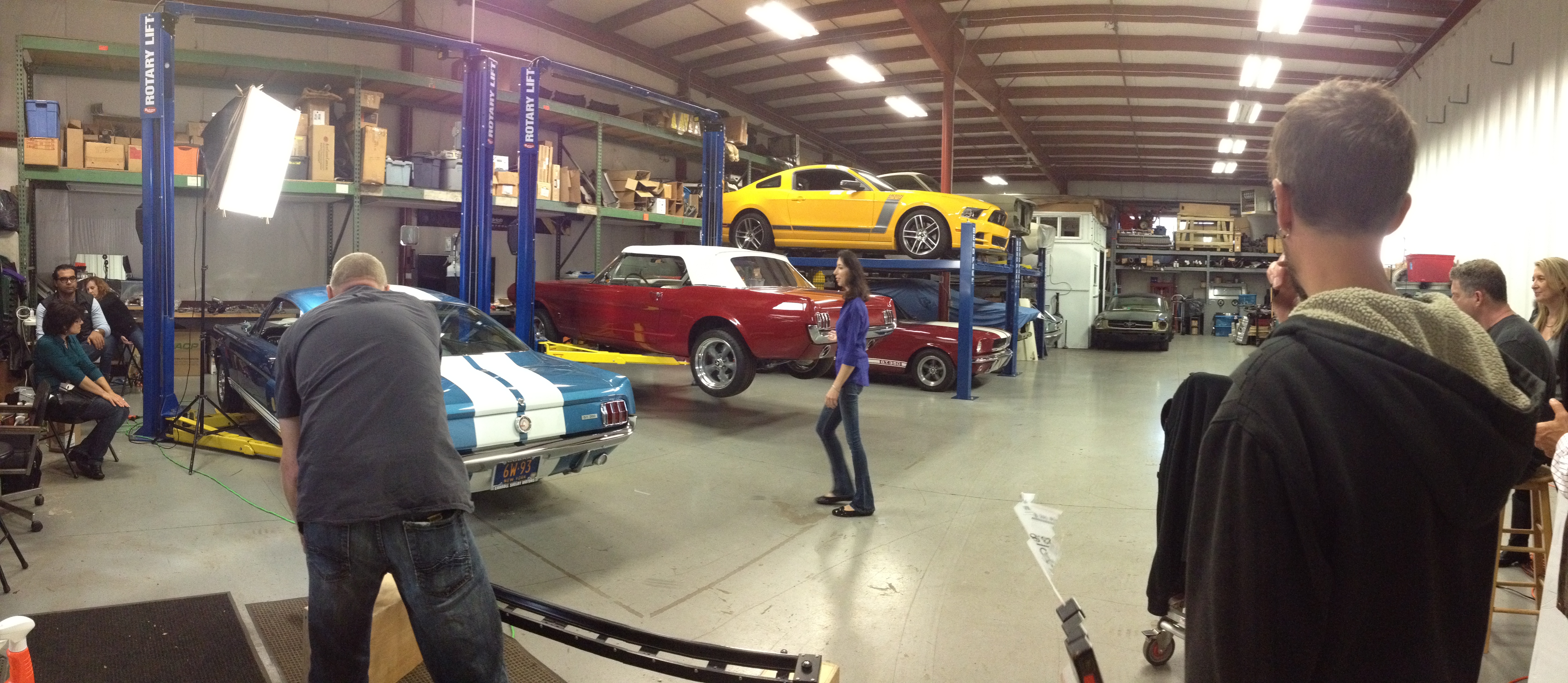 I just spent a day at Paul and Lauren’s Fix’s garage (filled with sick Mustangs) to shoot 3 spots for a leather care product Lauren Fix is spokespersoning for and I have to admit, I had a hard time not constantly staring at the cars.